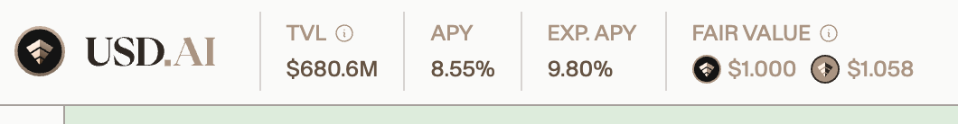 sUSDAI continues to lead net inflows as more of its stablecoin (USDAI) is minted and staked, giving access to GPU backed revenue. Less than $200m is available to be minted before it hits the $875m cap: