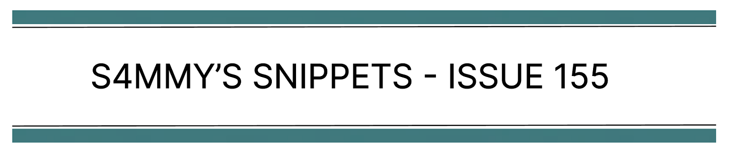 That’s a wrap for issue 155 of S4mmy’s Snippets. I hope you enjoyed it.