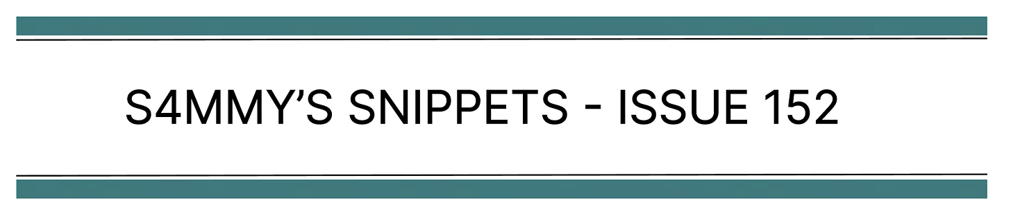 That’s a wrap for issue 152 of S4mmy’s Snippets. I hope you enjoyed it.